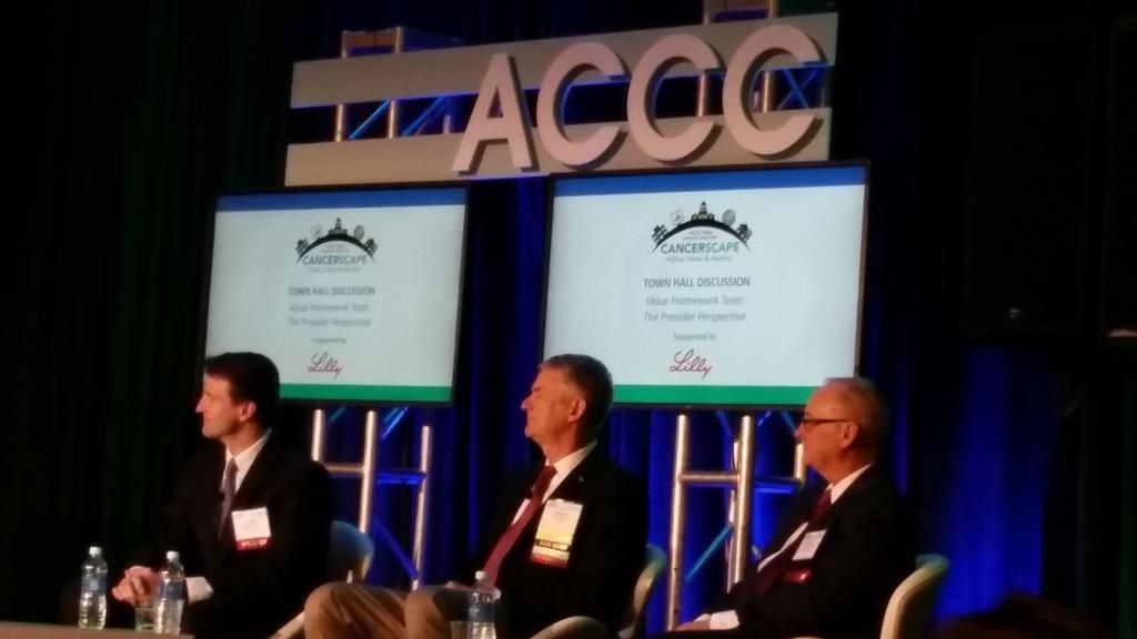 4. A panel discussion at the meeting drew attention to the practical challenges with transitioning toward value-based care. The panel, moderated by Christian Downs, JD, MHA, executive director of ACCC, included Alan Balch, PhD, chief executive officer, Patient Advocate Foundation; Thomas A. Gallo, MS, executive director, Virginia Cancer Institute, Inc; and George Kovach, MD, Iowa Cancer Specialists. The panelists discussed the need for standardizing the various value frameworks in the making and improving patient understanding of their health coverage, among other things.