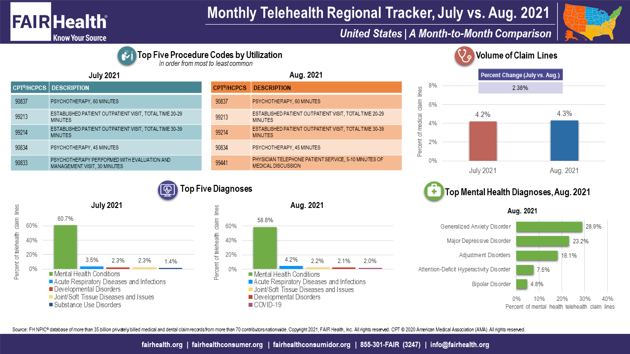 FIGURE 2. Monthly Telehealth Regional Tracker, July versus August 2021, United States