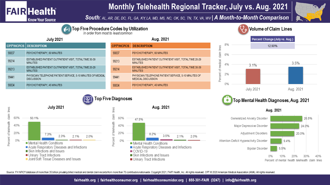 FIGURE 1. Monthly Telehealth Regional Tracker, July versus August 2021, South