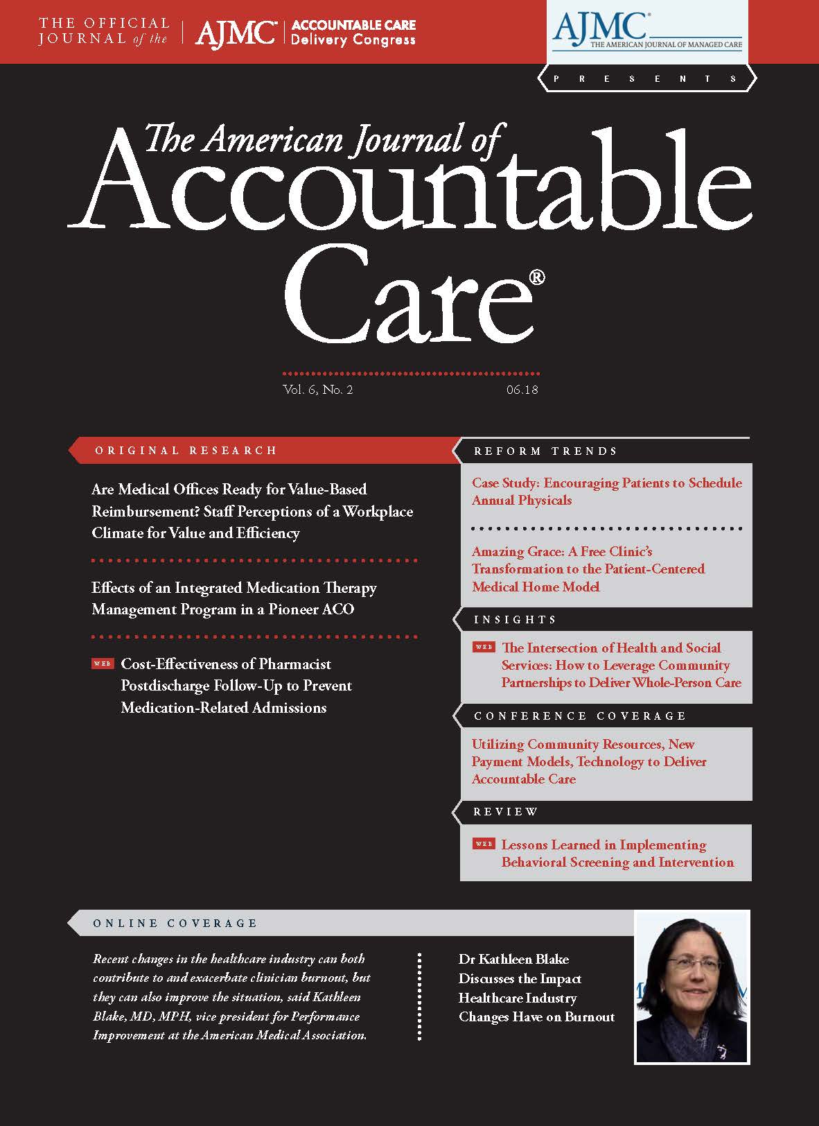 Although little is known about the current climate for value-based care in medical offices, it will be the centerpiece of outpatient reimbursement by 2019 when Medicare’s Merit-based Incentive Payment System and alternative payment models (eg, accountable care organizations [ACOs]) will be implemented together as the world’s largest pay-for-performance program. Similar efforts are underway in the private sector. The Health Care Transformation Task Force, a new coalition of private insurers and provider organizations, is aiming to move 75% of its contracts into value-based payment models by 2020. As of 2016, about 41% of their contracts were value-based, up from 30% in 2014.15 By putting providers at financial risk to implement value-based care, there is hope that the United States can begin to reduce the annual $750 billion (30%) in excess costs spent on low-value care and overuse.16 At the same time, there is strong interest in keeping small physician-owned medical offices on the front line of value-based care, as recent research shows that they have lower costs and fewer ambulatory care—sensitive admissions.17,18 Similarly, the smaller ACOs were found to have performed better in the 2015 Medicare Shared Savings Program.19