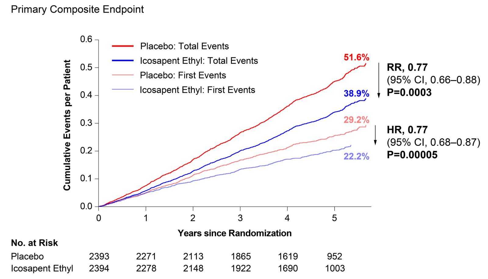 IPE was developed for patients with high triglycerides, and until recently was approved only for that use. FDA approved a cardiovascular indication late last year, after REDUCE-IT showed a 25% reduction in first events and a 30% reduction in first and future CV events.
