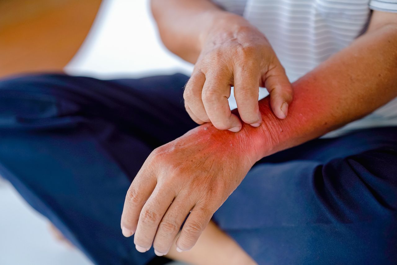Man scratching a bug bite | Image credit: Oporty786 - stock.adobe.com