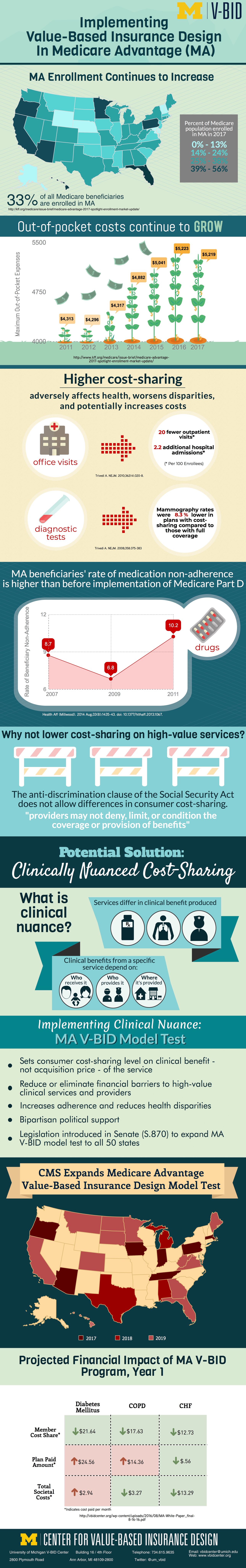 To learn more about how VBID can play a role in MA, view the infographic below, and visit the V-BID Center Medicare and MA initiative page.