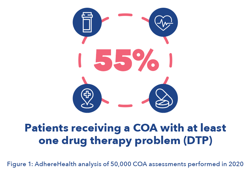 Disruptions in health care caused by the pandemic have made it more of a challenge for SNPs to perform necessary COAs. As a result, AdhereHealth found a troubling number of seniors were at risk of adverse drug reactions, allergic reactions, and other safety issues related to their medications.