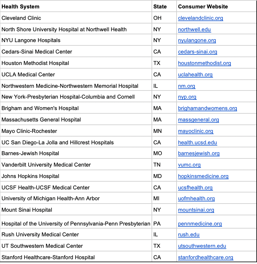 When auditing these top health system consumer websites in February 2024 for patient preferences, we discovered that:
