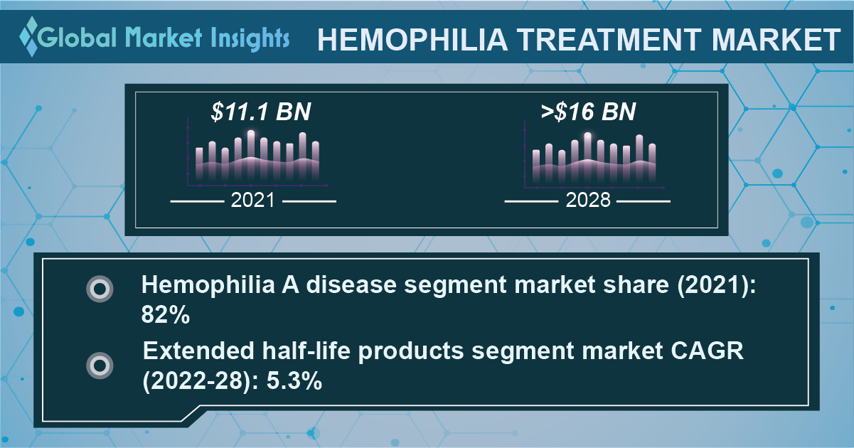 “With novel developments in hemophilia treatment progressing at an unprecedented pace, the industry is touted to seize an overall remuneration of USD 16 billion by 2028 end”- Global Market Insights Inc.
