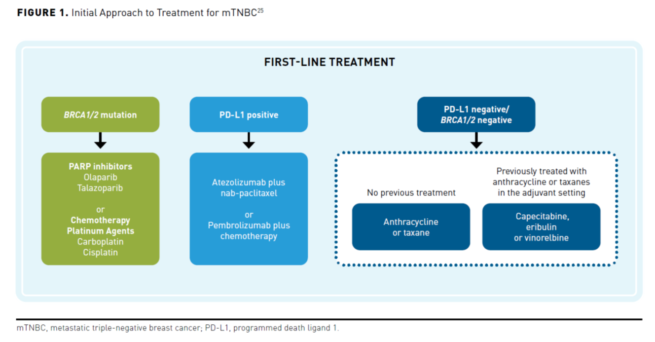 The combination of atezolizumab and nab-paclitaxel is included in the NCCN guidelines as a category 1 preferred treatment option for the initial treatment of mTNBC in patients with PD-L1−positive disease, as determined by an FDA-approved companion diagnostic.25