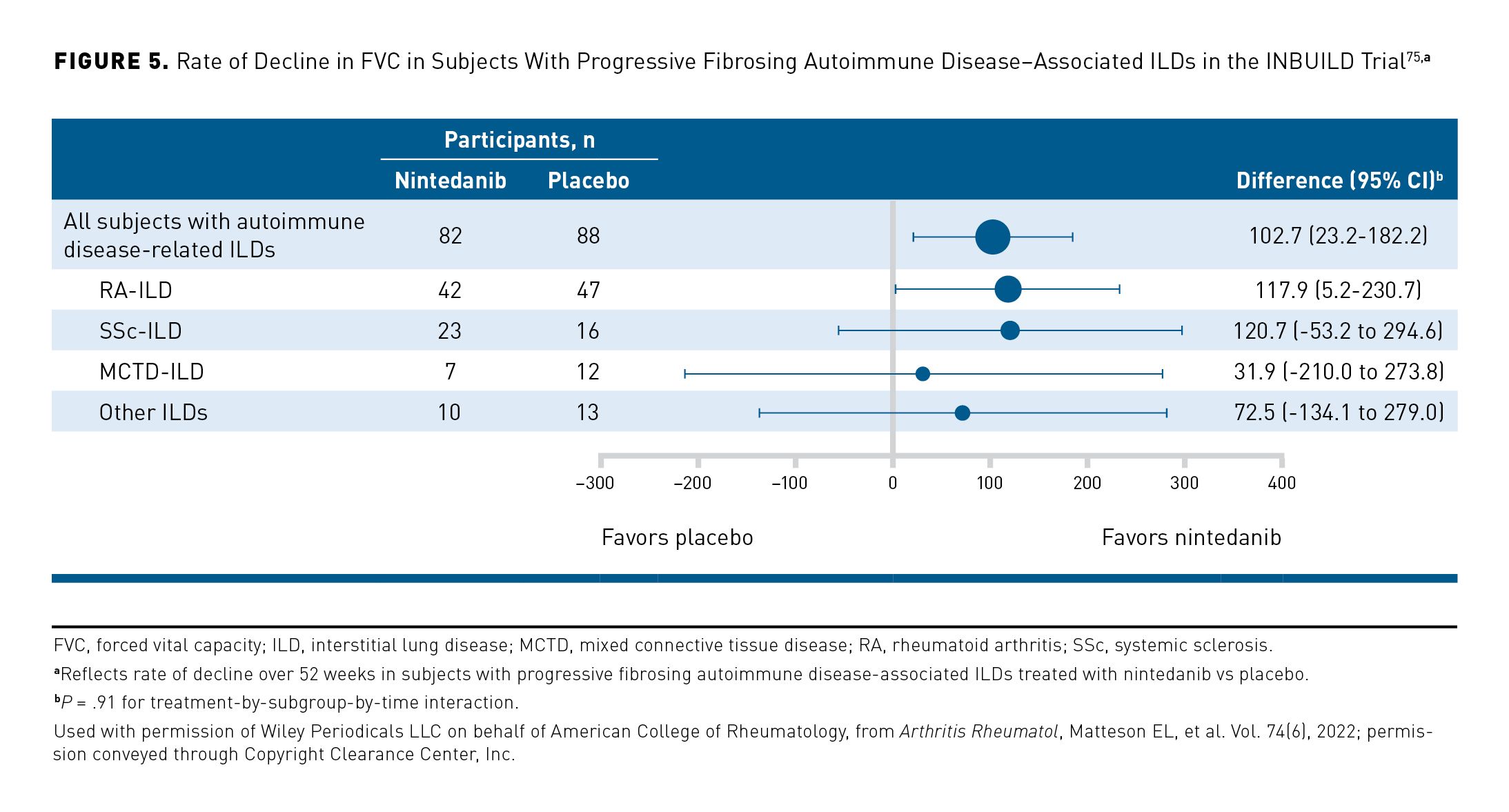 75. Matteson EL, Kelly C, Distler JHW, et al; INBUILD Trial Investigators. Nintedanib in patients with autoimmune disease-related progressive fibrosing interstitial lung diseases: subgroup analysis of the INBUILD trial. Arthritis Rheumatol. 2022;74(6):1039-1047. doi:10.1002/art.42075