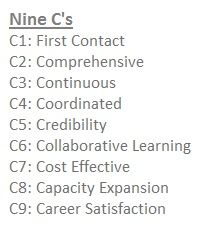 We’ve developed a role based playbook based on what we call the Nine C’s (see sidebar), a prescriptive approach that organizations on the journey of adopting accountable care can use.