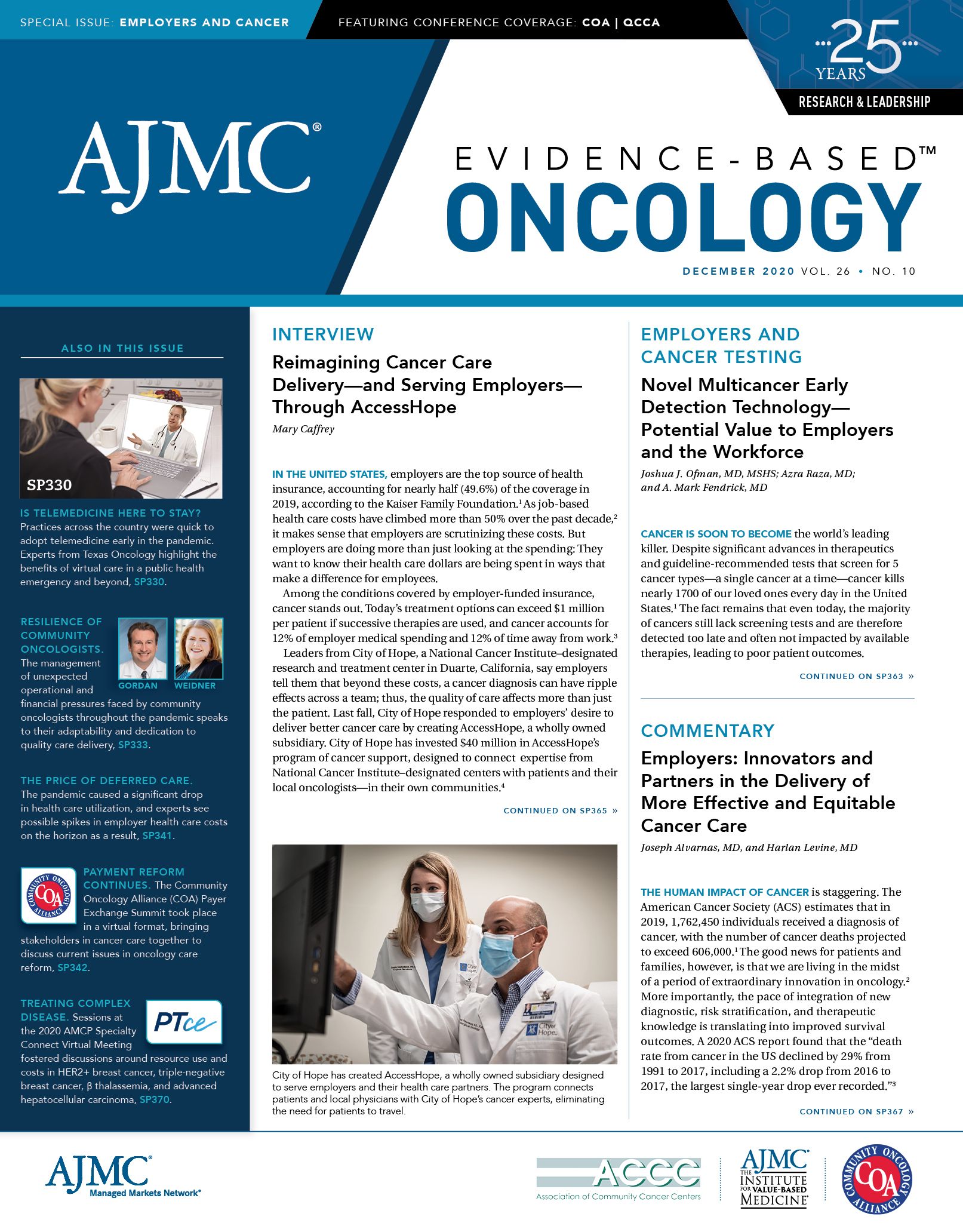 Employer innovation has also involved pushing the boundaries of knowledge access and disease-expertise access. AccessHope is a subsidiary of City of Hope that is working within this innovation space.24 A key part of the model for AccessHope is the belief that transformational clinical knowledge is exportable even across geographic barriers in which the capacities of “bricks and mortar” care represent a challenge to patient access to essential care (See related cover story). At present, AccessHope is working with more that 34 employers that represent 2 million covered lives through models that are geared toward forming supportive, collaborative relationships with local clinicians that is focused upon keeping patients closer to home, with their community-based clinician.