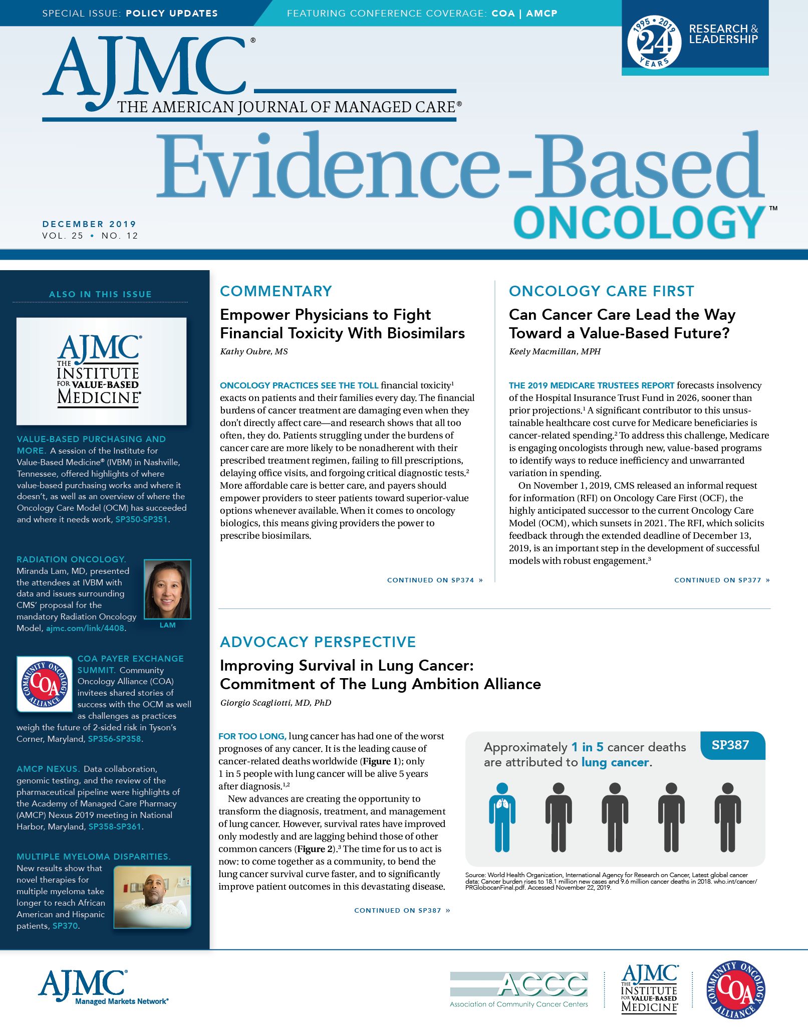 In this issue of Evidence-Based Oncology™ we examine this issue from multiple perspectives. Kathy Oubre, MS, provides perspective on biosimilars that may provide an innovative paradigm for blunting the cancer pharmaceutical rate of inflation. Keely Macmillan, MPH, provides an overview of the proposed Oncology Care First (OCF) model and how it may or may not lead to better incentives for physicians to practice value-based cancer care. Finally, Associate Editor Kashyap Patel, MD, provides one of 2 physician perspectives on the OCF model.