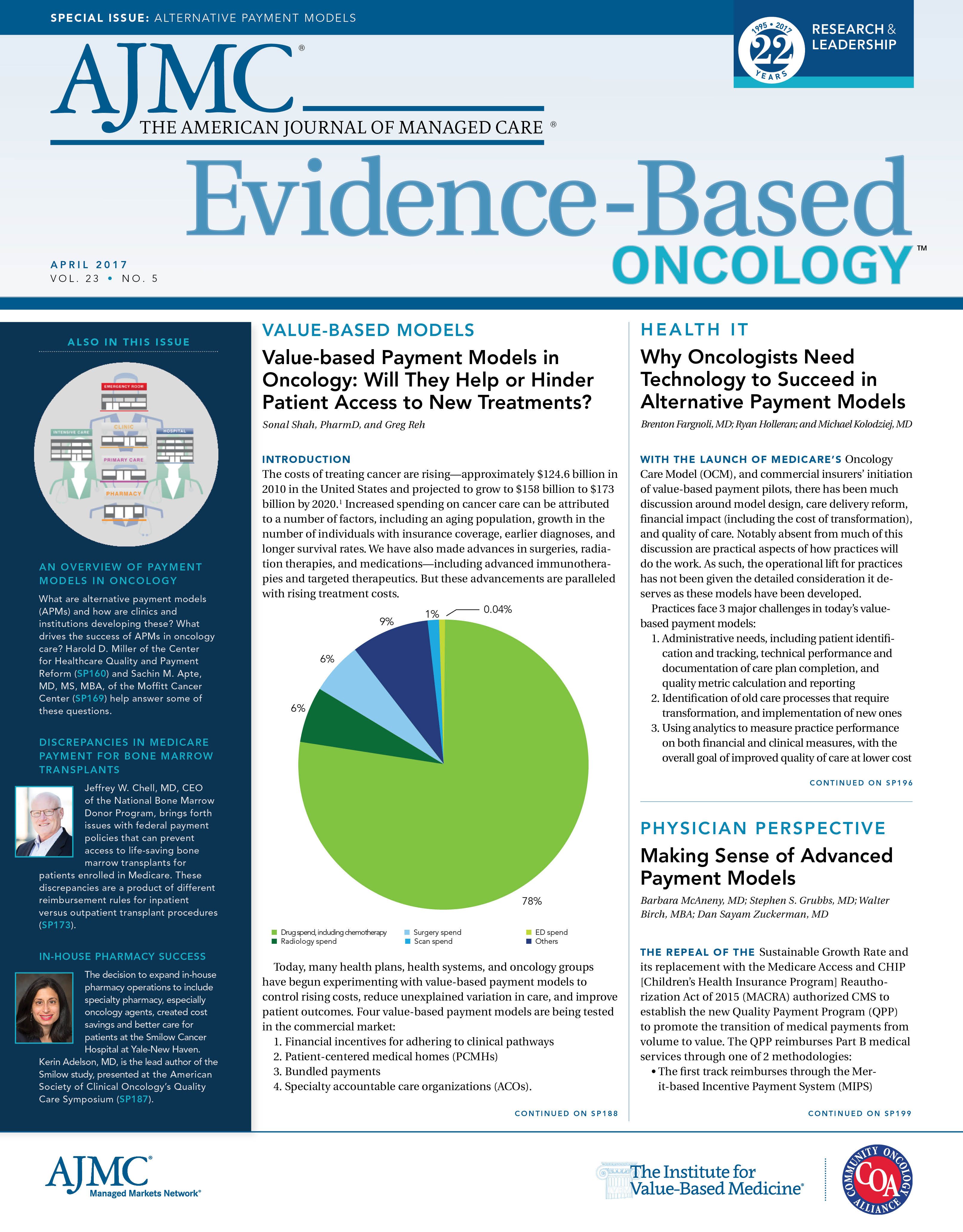 17. American Society of Clinical Oncology. Patient-centered oncology payment: payment reform to support higher quality, more affordable cancer care. ASCO website. http://www.asco.org/sites/ new-www.asco.org/files/content-files/advocacy-and-policy/documents/asco-patient-centered-oncology-payment.pdf. Published May 2015. Accessed February 3, 2017.