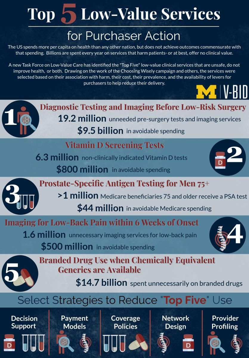 To learn more, view the infographic below, read the Task Force on Low-Value Care’s press release, and visit the Low-Value Care initiative page on the V-BID Center website.