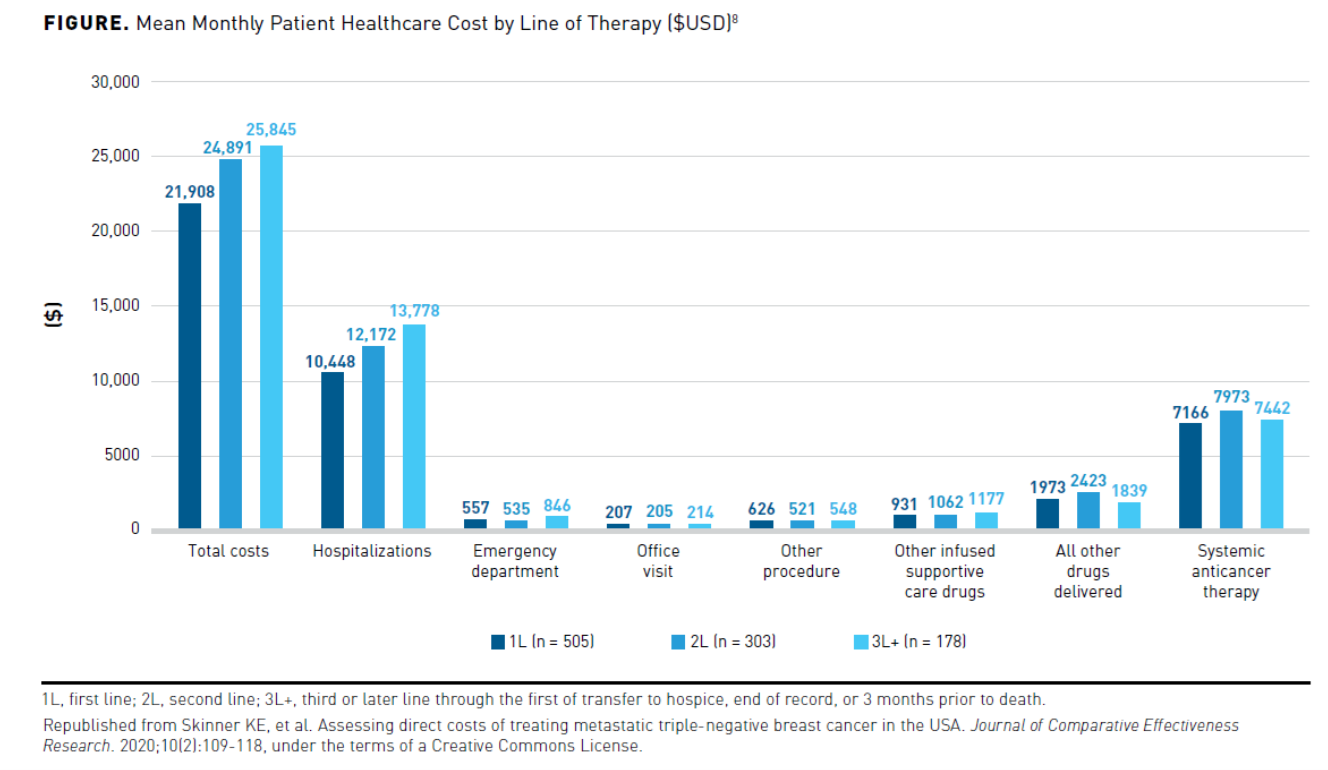 8. Skinner KE, Haiderali A, Huang M, Schwartzberg LS. Assessing direct costs of treating metastatic triple-negative breast cancer in the USA. J Comp Eff Res. 2021;10(2):109-118. doi: 10.2217/cer-2020-0213