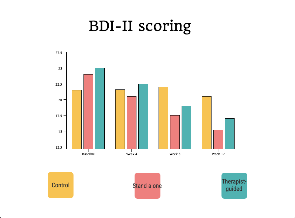 Both iCBT groups showcased significantly improved reductions in depressive symptoms compared with controls (BDI-II mean differences, control vs stand-alone: 6.32 points; P < .0001; control vs therapist guided: 5.80 points; P < .0001). The authors noted that overall quality of life improvements were also observed in the iCBT groups (measured with WHO Quality of Life-Brief Version and Multiple Sclerosis Impact Scale-29 assessments on psychological, physical, and environmental domains).