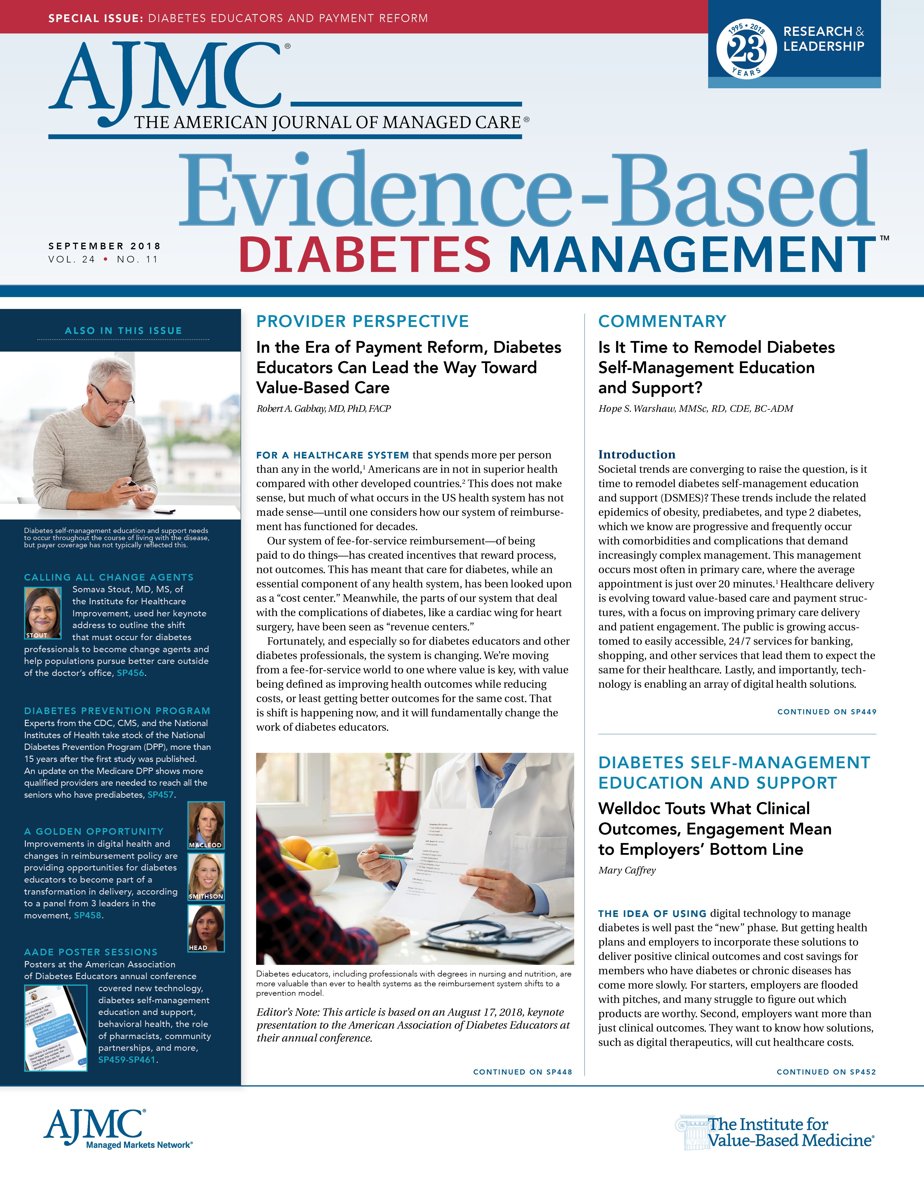 A former president of the American Association of Diabetes Educators addresses the need to remodel diabetes self-management education and support, to create a reimbursement system that better meets the needs of today's providers and patients.