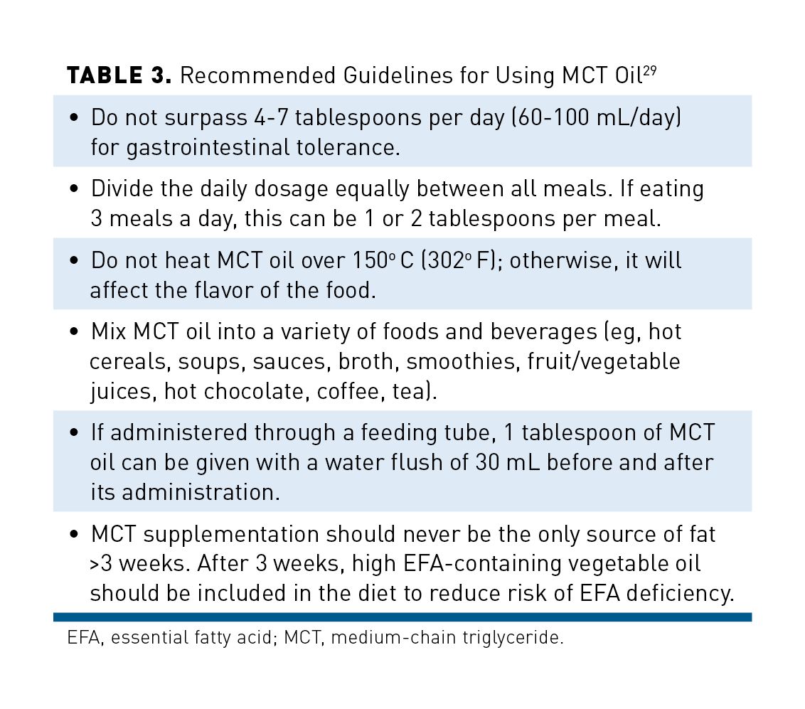 29. Shah ND, Limketkai BN. The use of medium-chain triglycerides in gastrointestinal disorders. Practical Gastro. Published February 2017. Accessed May 20, 2020. med.virginia.edu/ginutrition/wp-content/uploads/sites/199/2014/06/Parrish-February-17.pdf