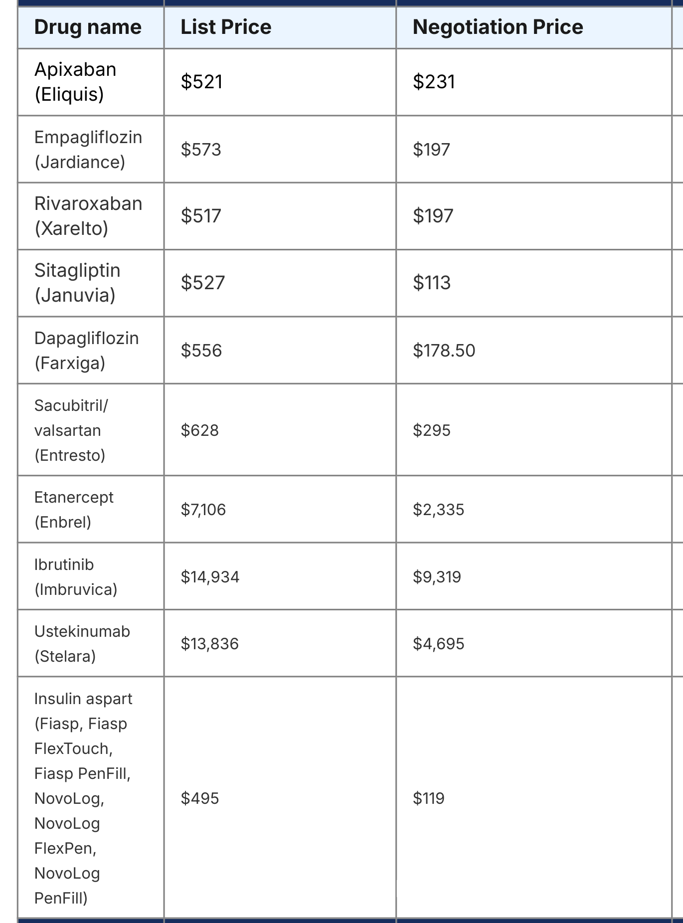 “Americans pay too much for their prescription drugs. That makes today’s announcement historic. For the first time ever, Medicare negotiated directly with drug companies and the American people are better off for it,” said HHS Secretary Xavier Becerra.1