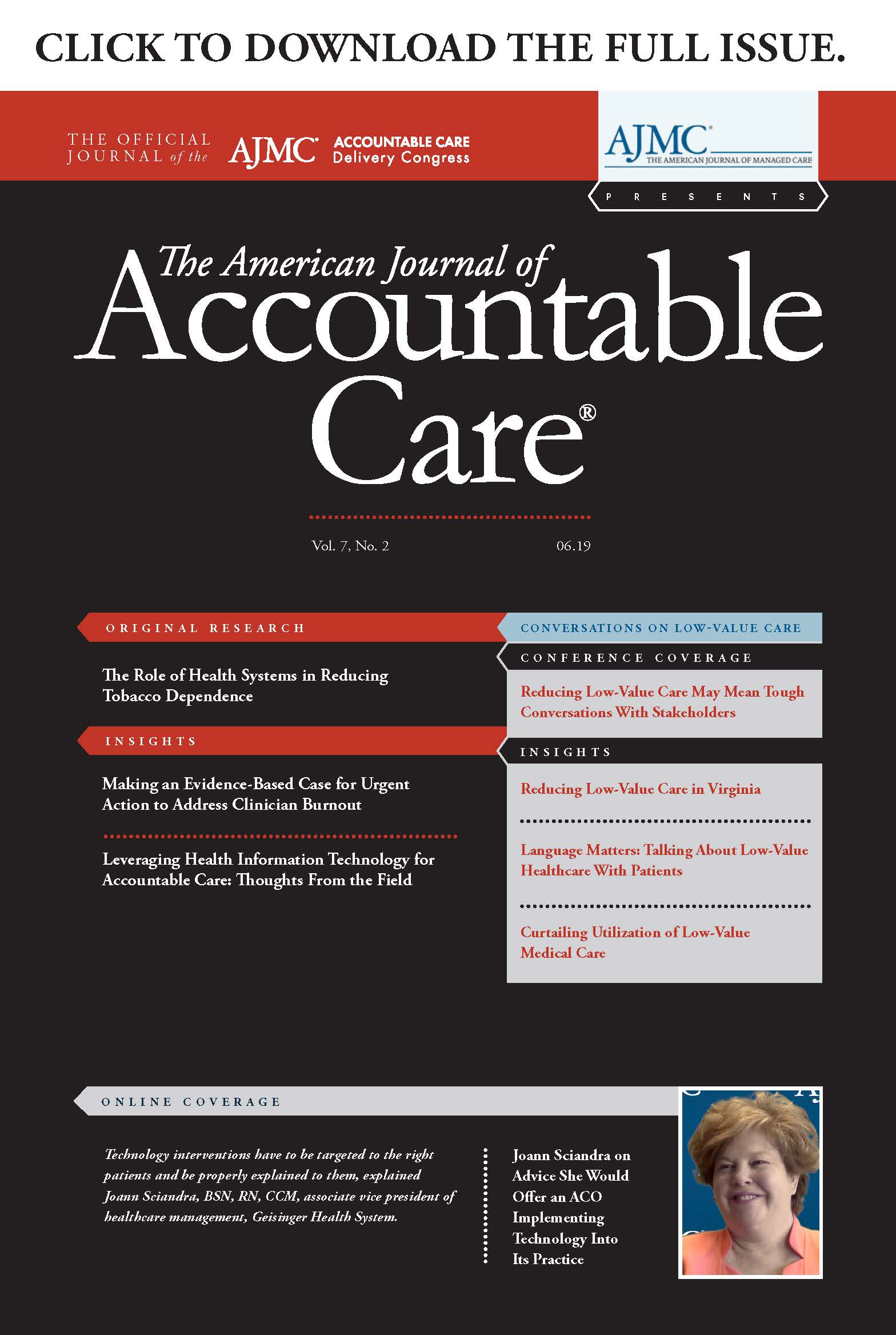 The American Journal of Accountable Care. 2019;7(2):12-14More than half of all clinicians throughout the United States experience symptoms of burnout.1-4 The constellation of burnout, depression, and suicide in clinicians is now a public health epidemic that is having adverse effects on the quality and safety of healthcare. Burnout manifests itself by emotional exhaustion, no longer finding work as meaningful, and feelings of ineffectiveness, as well as a tendency to view patients, students, and colleagues as objects rather than as human beings.5