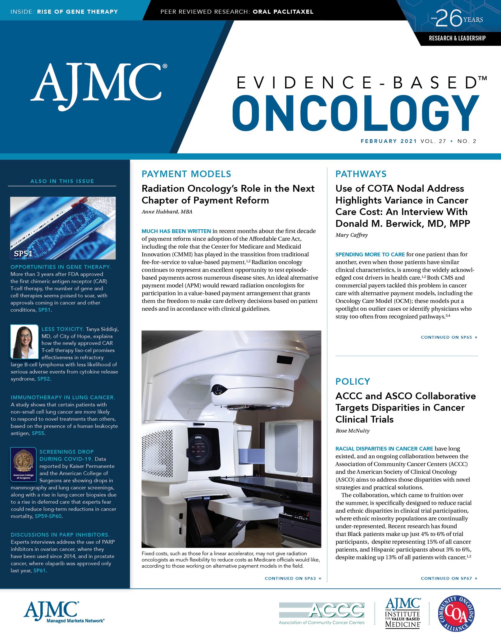 1. Chang S, Savitz A, Vuong B, et al. Characterization of breast cancer management during the COVID 19 pandemic in a large integrated healthcare delivery system: Stage at diagnosis and timing/modality of first treatment. Presented at: San Antonio Breast Cancer Symposium; December 8-11, 2020. Abstract SS2-06. https://www.abstractsonline.com/pp8/#!/9223/presentation/704