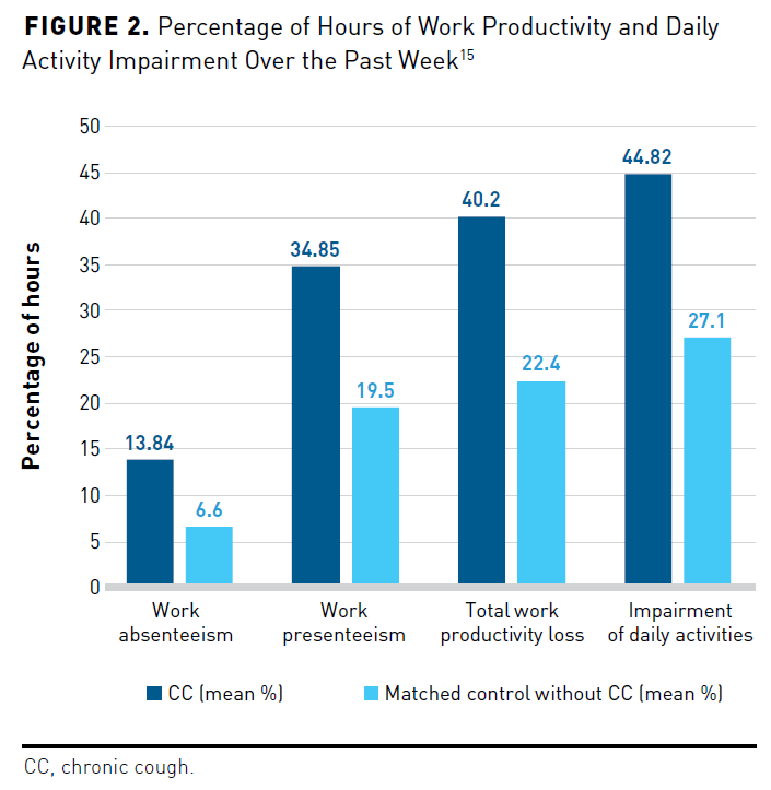 A smaller cross-sectional study in Japan also revealed that CC negatively impacted HRQOL, WPAI, absenteeism, and presenteeism. The 568 respondents with CC reported significantly poorer HRQOL compared with 2272 matched participants without CC in the 12-Item Short Form Survey Instrument Version 2 and subcomponents (mental component summary mean scores: 46.27 vs 49.22; physical component summary mean scores: 49.10 vs 52.03; both P <.001) as well as in the Short Form 6-Item Descriptive Utility Index (0.72 vs 0.77; mean EQ-5D-5L: 0.80 vs 0.87; both P <.001) after propensity score matching. Compared with the control group, respondents with CC reported more symptoms of depression (8.3% vs 4.1%; P <.001), anxiety (3.9% vs 1.5%; P <.001), and sleep disturbances (66.2% vs 48.7%; P <.001). Participants with CC also reported significantly greater total activity impairment (28.05% vs 19.01%; P <.001), total work productivity impairment (26.48% vs 18.49%, P <.001), absenteeism (4.54% vs 2.42%; P = .004), and presenteeism (25.56% vs 17.38%; P <.001) than the matched control cohort.16