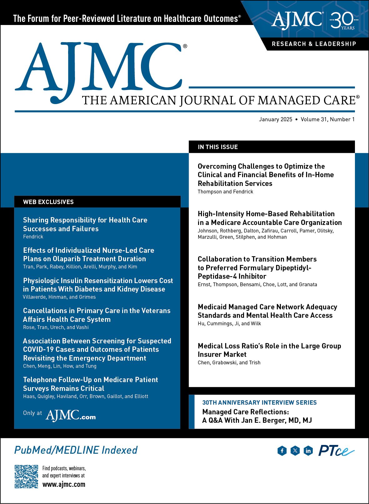 To mark the 30th anniversary of The American Journal of Managed Care (AJMC), each issue in 2025 includes a special feature: reflections from a thought leader on what has changed—and what has not—over the past 3 decades and what’s next for managed care. The January issue features a conversation with longtime editorial board member Jan E. Berger, MD, MJ, the CEO of Health Intelligence Partners.