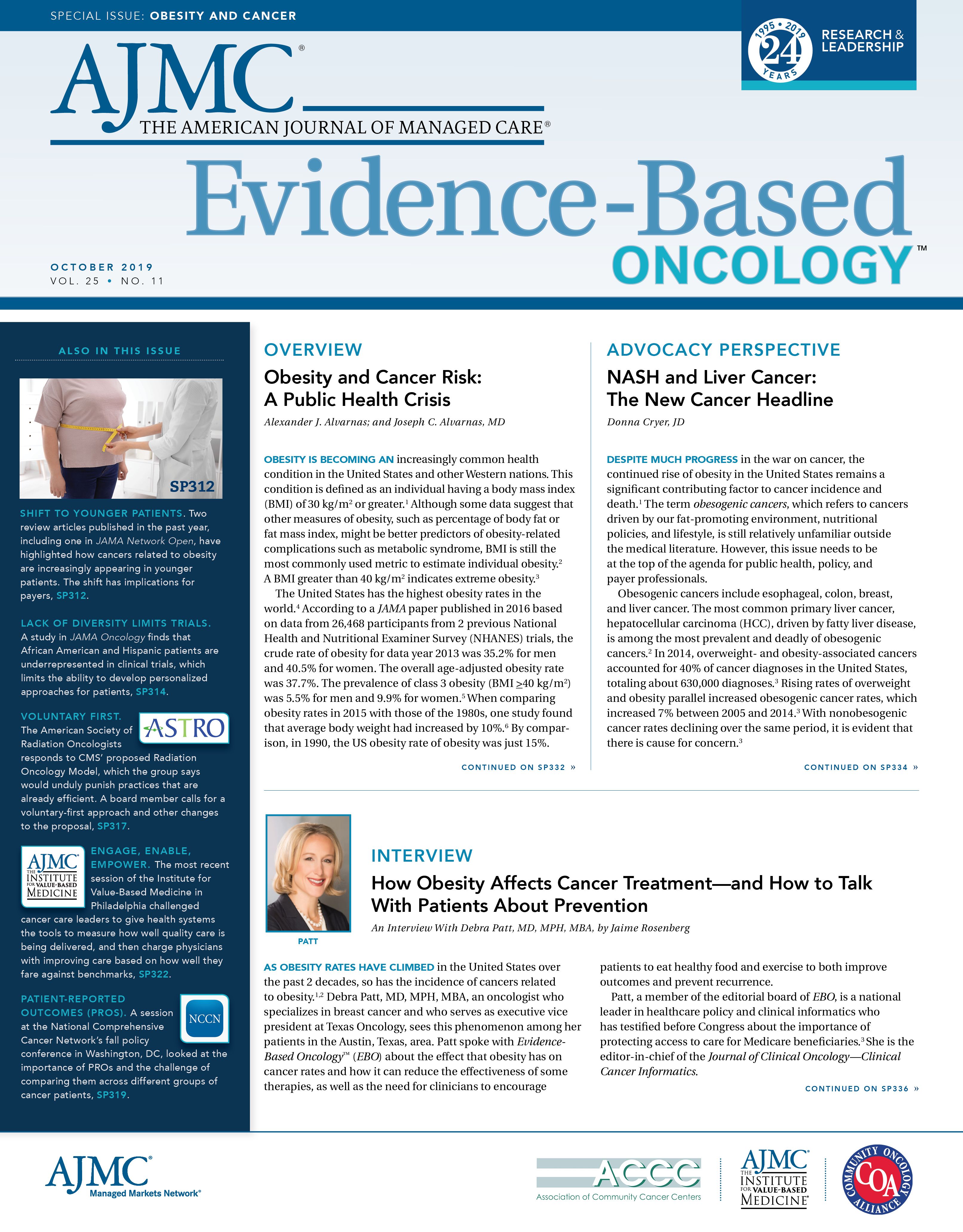 Rising obesity rates have emerged as a key public health threat. Both obesity-related cancers and the numerous adverse chronic health conditions that are related to obesity take an enormous human toll and consume more than $200 billion annually in avertable healthcare costs. The link between obesity and numerous cancer types is well-established. Research into the underlying biology has identified numerous obesity-related inflammatory, cellular, and extracellular mechanism behind this phenomenon. Through more personalized care focusing upon obesity risk reduction, more effective patient and family education, and a concerted series of efforts that parallel those that have proven effective at reducing tobacco, we may be able to reduce the immense human suffering and extraordinary economic costs of this epidemic. Author Information