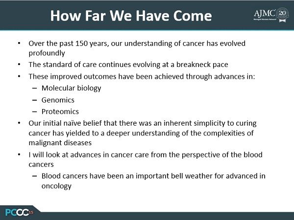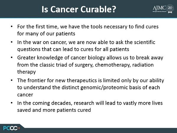 Joseph Alvar­nas, MD, direc­tor of value-based analytics at City of Hope, Duarte, California, and editor-in-chief of Evidence-Based Oncology painted an upbeat picture of cancer cure rates at the 2015 meeting of Patient-Centered Oncology Care.