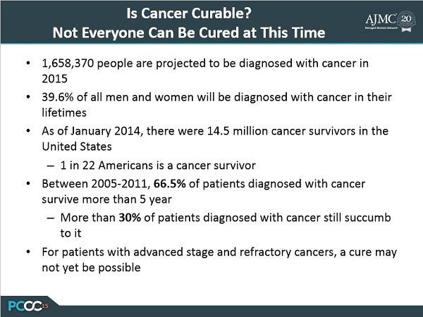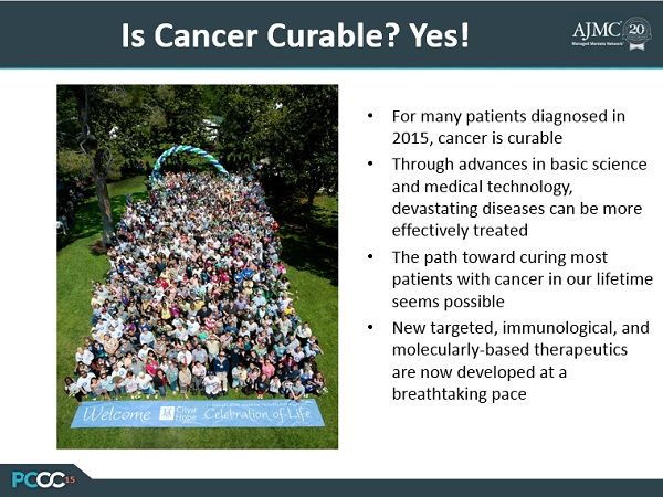 Joseph AlvarÂnas, MD, direcÂtor of value-based analytics at City of Hope, Duarte, California, and editor-in-chief of Evidence-Based Oncology painted an upbeat picture of cancer cure rates at the 2015 meeting of Patient-Centered Oncology Care.