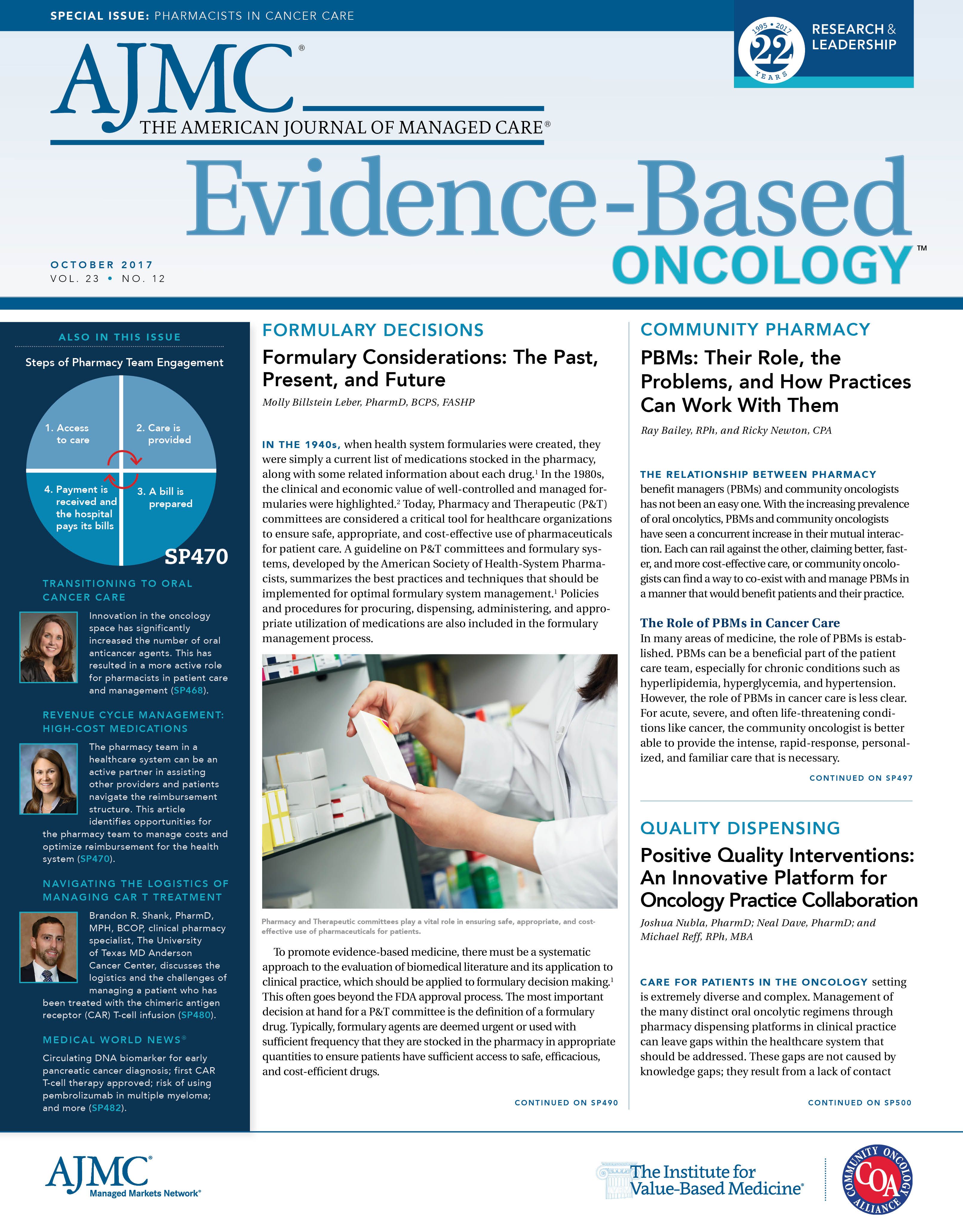 benefit managers (PBMs) and community oncologists has not been an easy one. With the increasing prevalence of oral oncolytics, PBMs and community oncologists have seen a concurrent increase in their mutual interaction. Each can rail against the other, claiming better, faster, and more cost-effective care, or community oncologists can find a way to co-exist with and manage PBMs in a manner that would benefit patients and their practice.