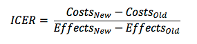 From a conceptual standpoint, the ICER is really simple and straightforward. The real fun begins when a researcher begins to determine which “costs” and which “effects” to count for this equation.