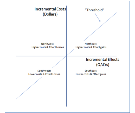 When an ICER is calculated using all the costs and effects estimates in accordance with the methods recommended by the Cost-Effectiveness Supreme Court (aka: The Second Panel), the resulting ratio will be expressed in a dollar/QALY figure. By cost-effectiveness researchers reporting results this way, a decision-maker (government, private insurance, provider, or even a patient) can begin to think about whether a new treatment is providing good “value for money” compared to the old treatment. In other words, a new drug that only offers minimal effect gains but at a much higher price compared to the old treatment might not be considered a good value.
