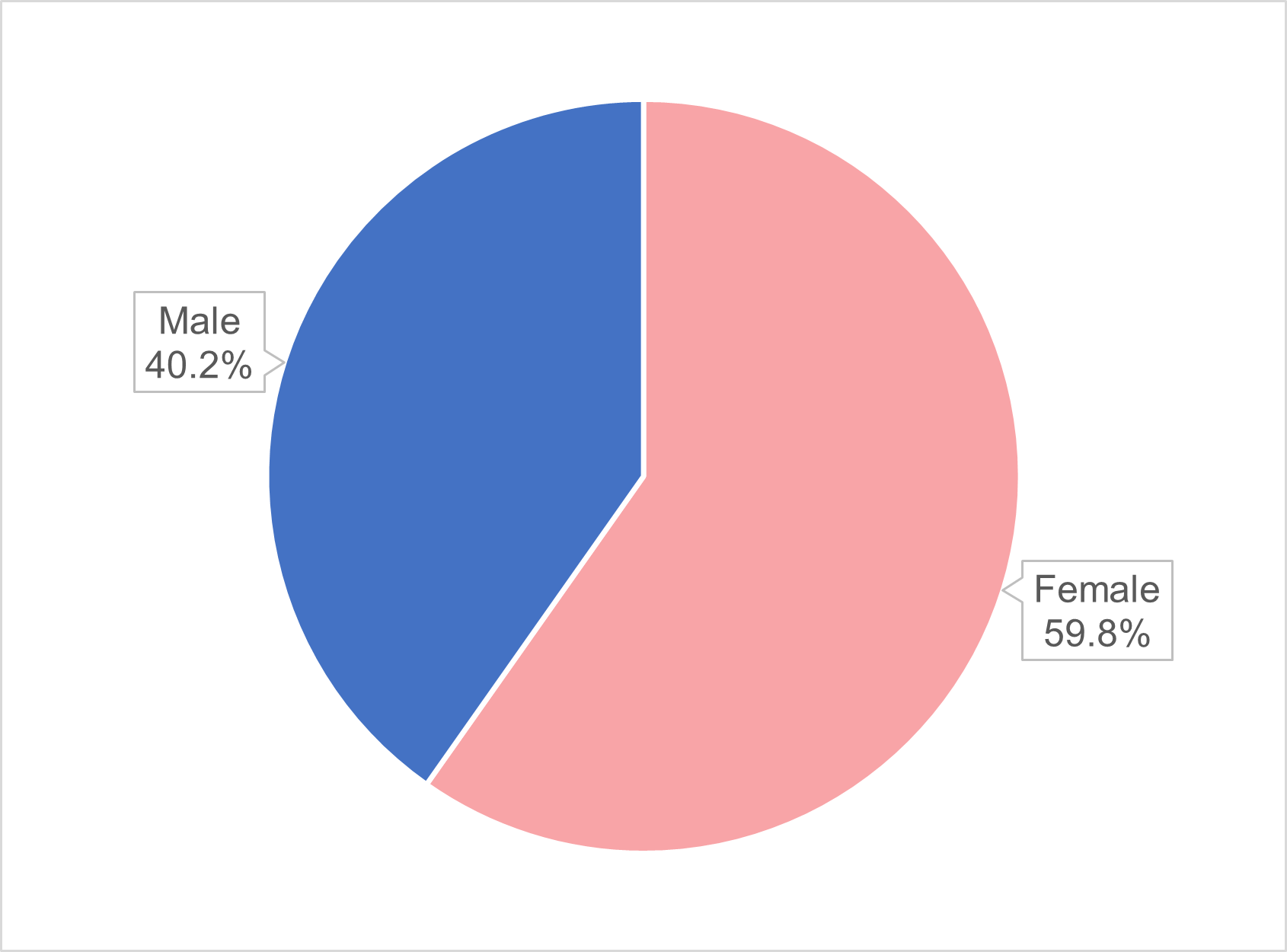 Females were more likely than males to be diagnosed with U09.9 post-COVID conditions. Females made up 59.8% of the population of patients with that diagnosis, while males made up 40.2% (FIGURE 2).