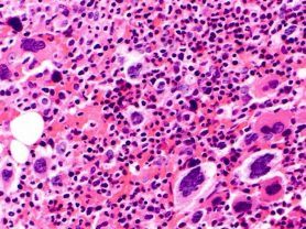 Bone marrow from patient with primary myelofibrosis stained with hematoxylin and eosin | Image credit: MD Anderson