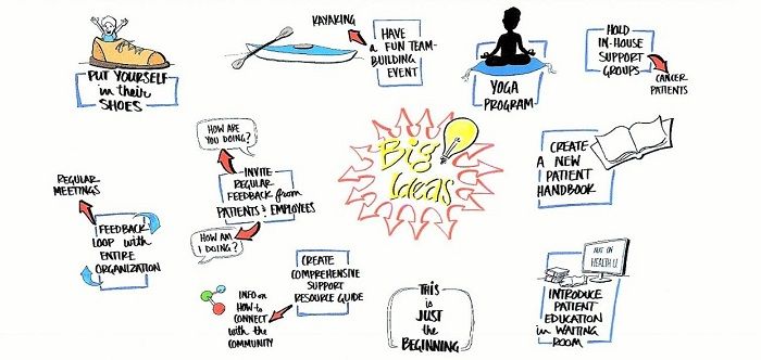 In the second quarter of the workshop, we asked employees to come up with ideas regarding the best way to implement IOM care plan (Figure 2). Our team came up with ideas to offer integrative, palliative, and spiritual care in house.