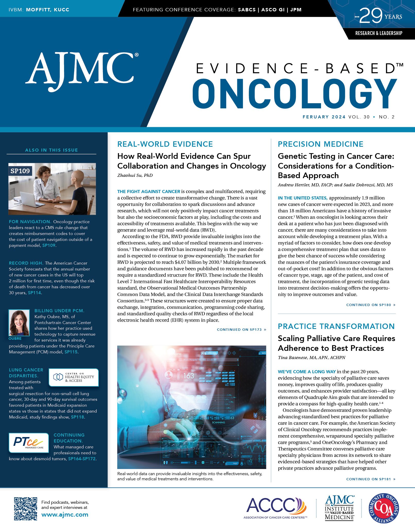 Oncologists have demonstrated proven leadership advancing standardized best practices for palliative care in cancer care. For example, the American Society of Clinical Oncology recommends practices implement comprehensive, wraparound specialty palliative care programs,5 and OneOncology’s Pharmacy and Therapeutics Committee convenes palliative care specialty physicians from across its network to share evidenced-based strategies that have helped other private practices advance palliative programs.