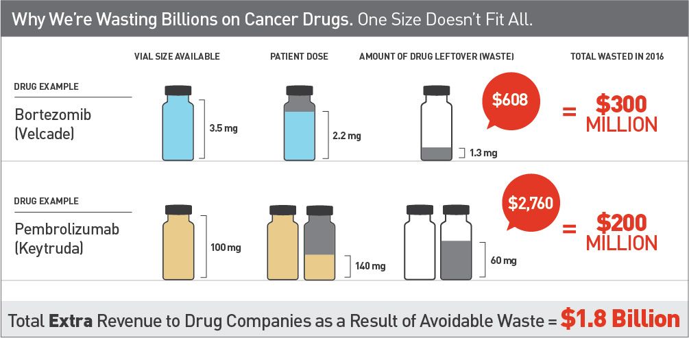The pharmaceutical industry needs to rethink its approach to packaging cancer drugs into a one-size vial to avoid drug wastage and save over $1.7 billion in 2016.