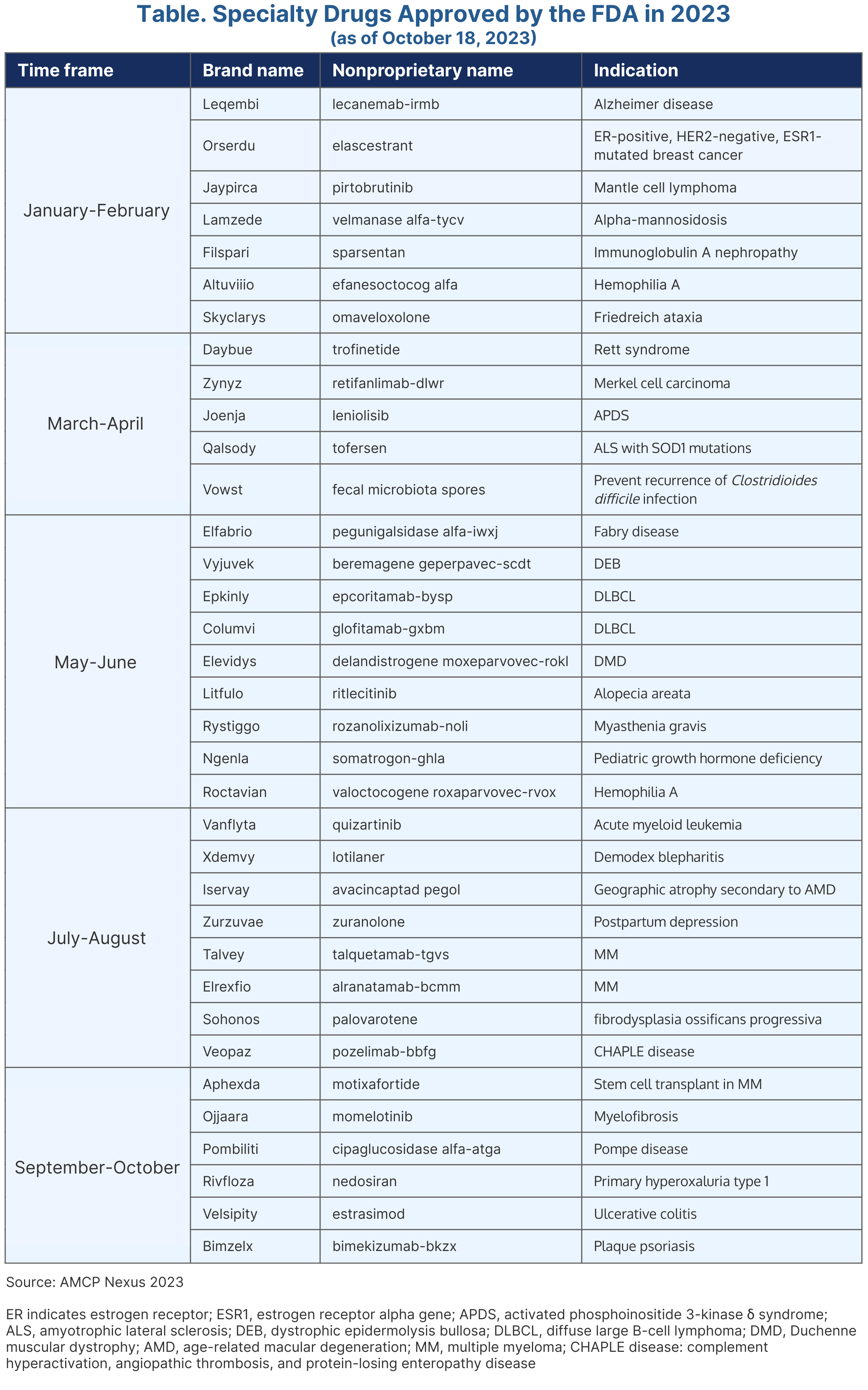 At AMCP Nexus, Evernorth's Aimee Tharaldson, PharmD, provided an overview of which medications the FDA has approved in 2023 and what’s to come in nononcology areas over the next 5 years, including new drugs for Alzheimer disease, hemophilia, and nonalcoholic steatohepatitis (NASH).