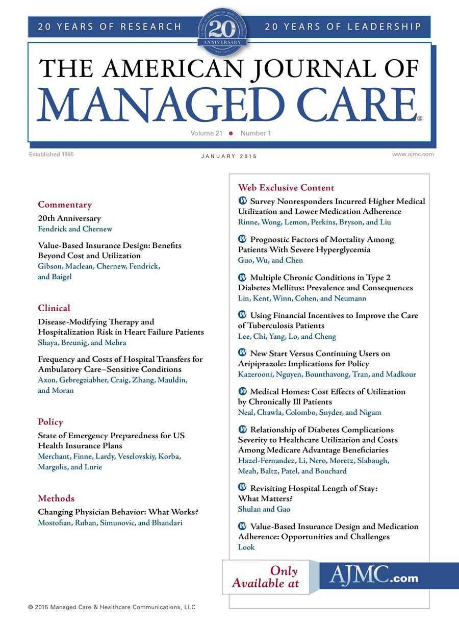 As significant emergency events with broad impacts on health are currently in progress (eg, the Ebola epidemic)23,24 and will inevitably occur on a continuing basis, the study’s aim was to better understand the current state of preparedness of health insurance plans and to identify health insurance industry best practices for public health emergencies.
