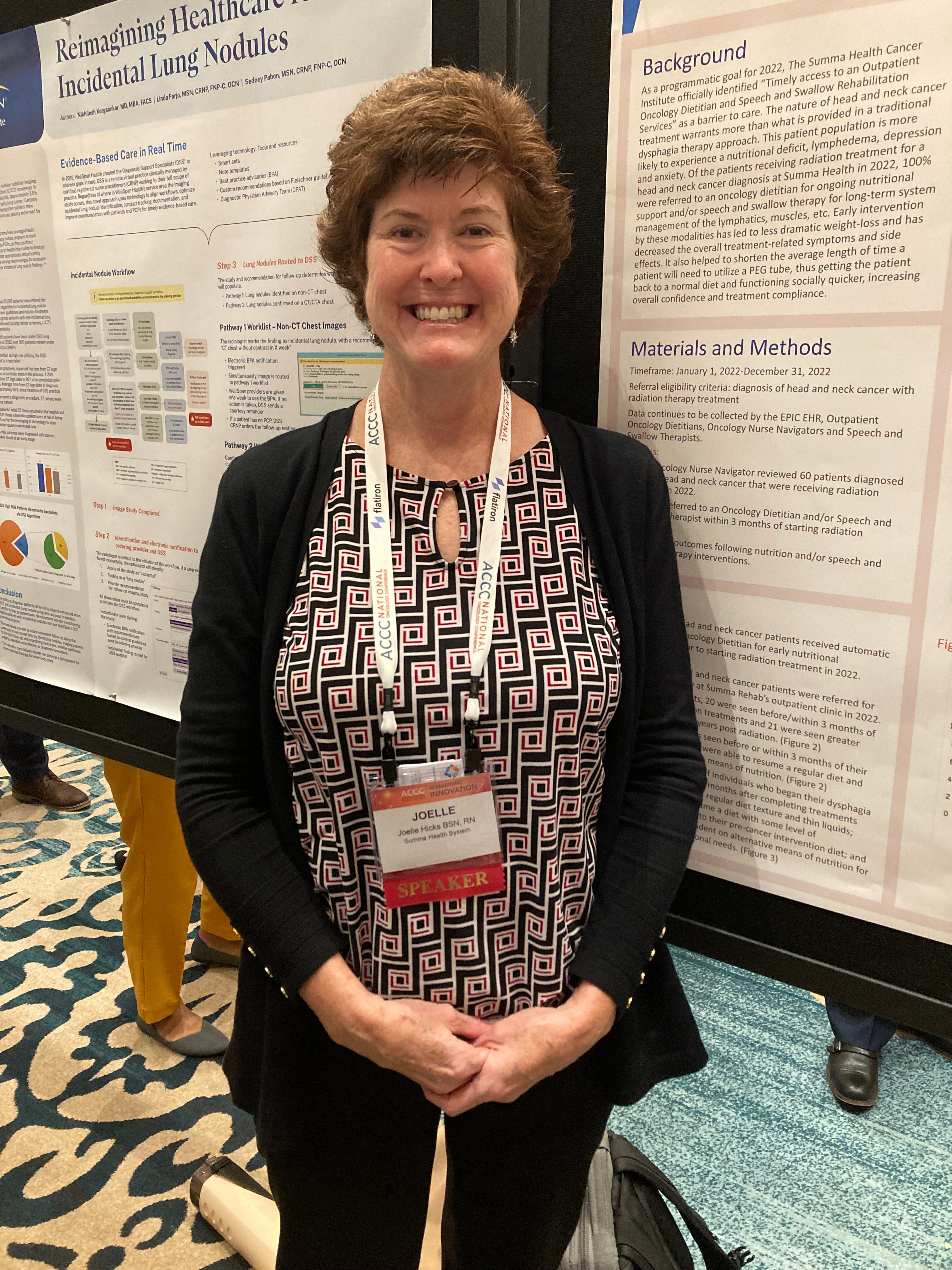 A 2022 yearlong initiative at Summa Health Cancer Institute saw 100% of its patients with head and neck cancer undergoing radiation treatment referred to an oncology dietician for nutritional support and/or speech and swallow therapy.