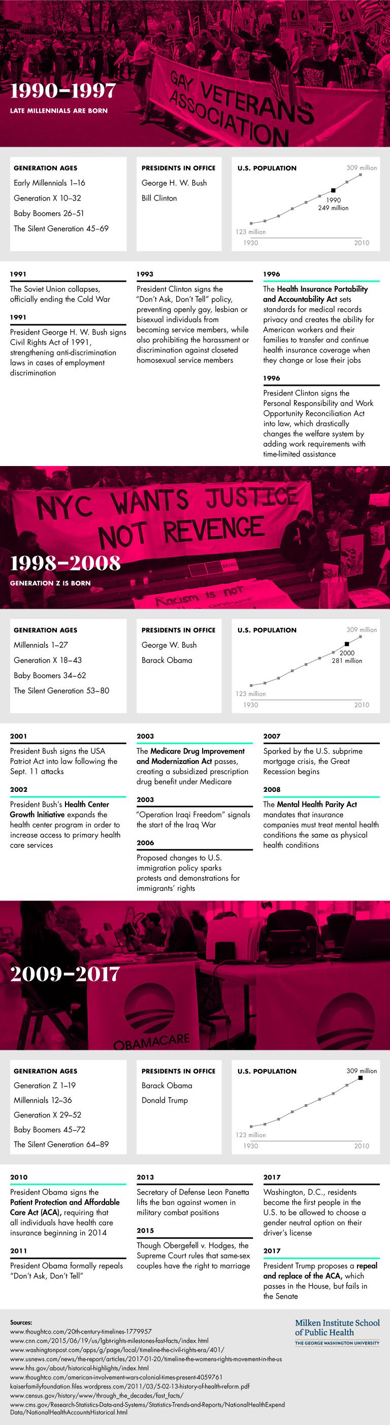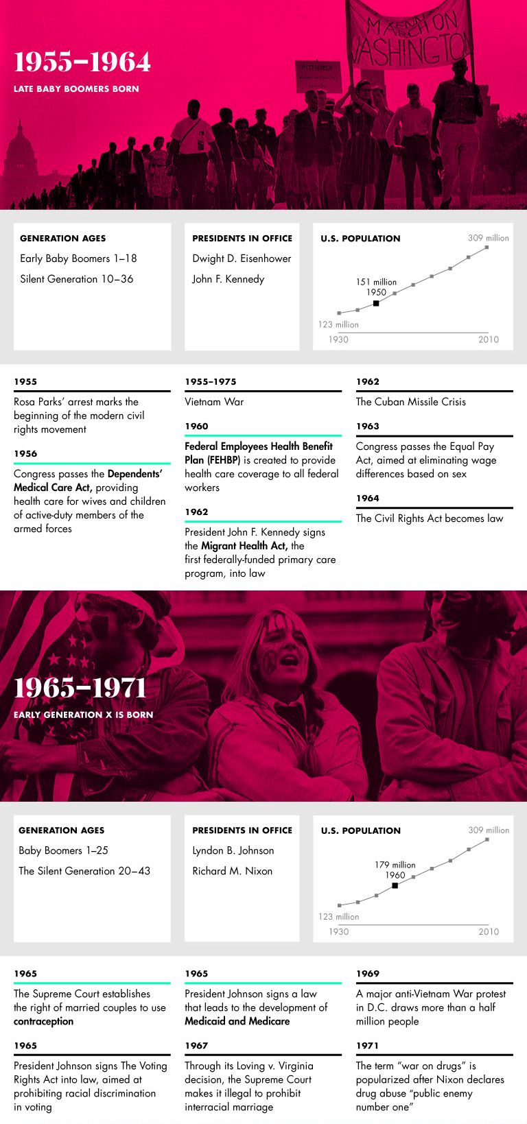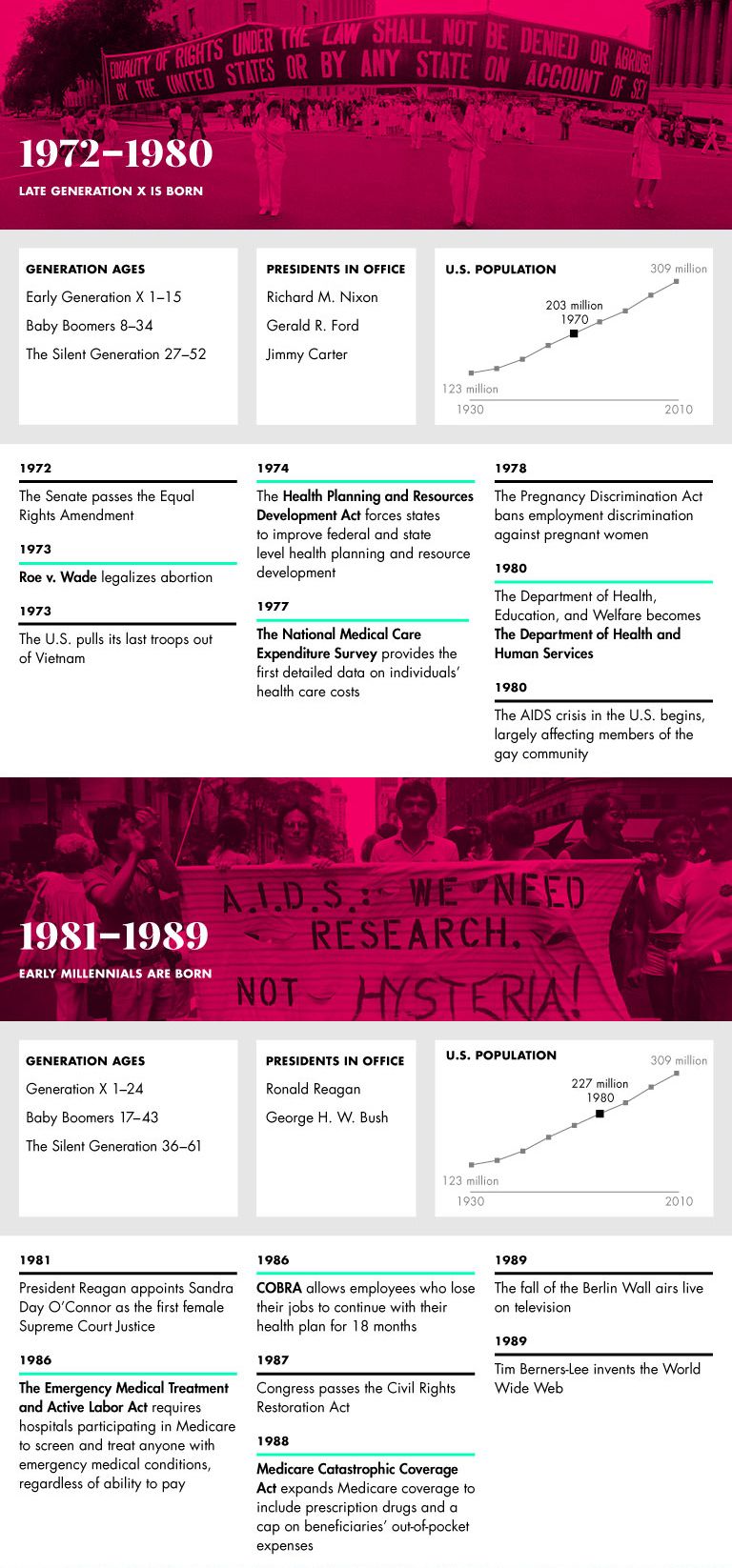 Millennials and baby boomers have experienced different waves of social, economic, political and health care reform at different stages of their lives. As health outcomes become increasingly dependent on strong patient—provider relationships, it will be even more important to understand the generational context for people’s beliefs, practices and behaviors.