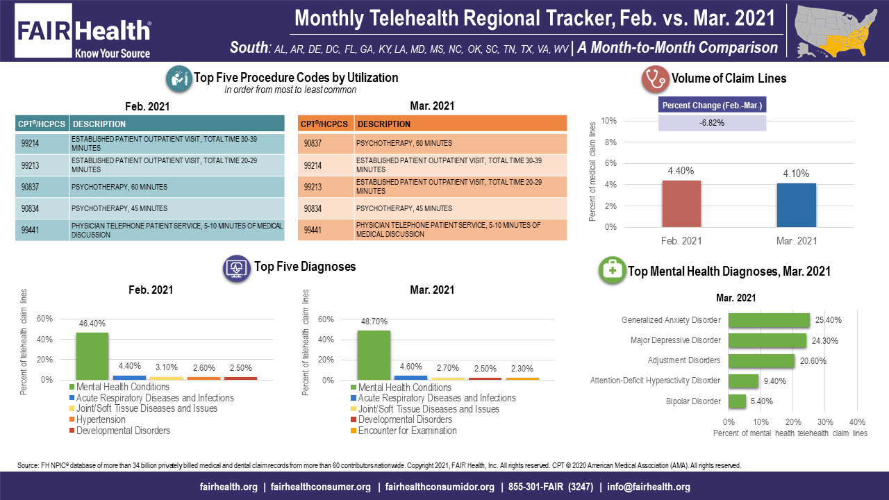 FIGURE 2. Monthly Telehealth Regional Tracker, February versus March 2021, South