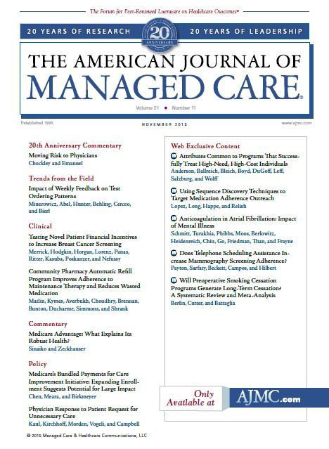 The authors thank Elizabeth Goheen, formerly of Tufts Health Plan, for her work on data collection and analysis; Eve Wittenberg, MPP, PhD, for consultation; and Michele Hutcheon for manuscript preparation assistance.Author Affiliations: Brandeis University, Institute for Behavioral Health, Heller School for Social Policy and Management (ELM [formerly at Brandeis University], DH, CMH, LL, LP, GR), Waltham, MA; Tufts Health Plan (PK, DP, RAN), Watertown, MA.