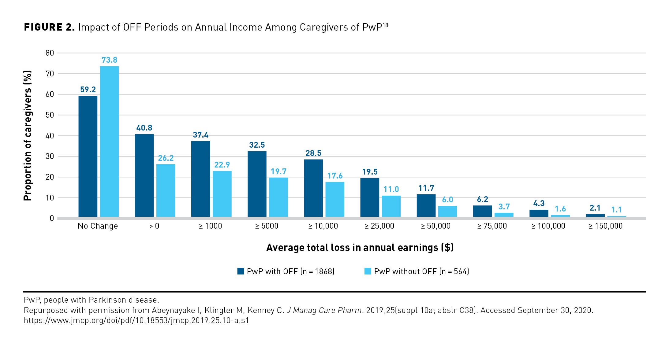 18. Abeynayake I, Klingler M, Kenney C. The financial burden of Parkinson’s disease is greater for caregivers of people experiencing OFF periods. J Manag Care Pharm. 2019;25(suppl 10a; abstr C38). Accessed September 30, 2020. https://www.jmcp.org/doi/pdf/10.18553/jmcp.2019.25.10-a.s1