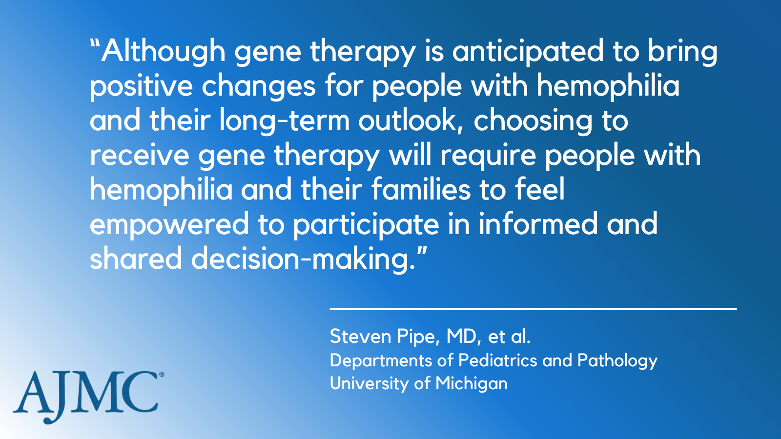 “Although gene therapy is anticipated to bring positive changes for people with hemophilia and their long-term outlook, choosing to receive gene therapy will require people with hemophilia and their families to feel empowered to participate in informed and shared decision-making,” investigators wrote. “Not all people will hemophilia will be eligible for, or decide to receive, gene therapy.”