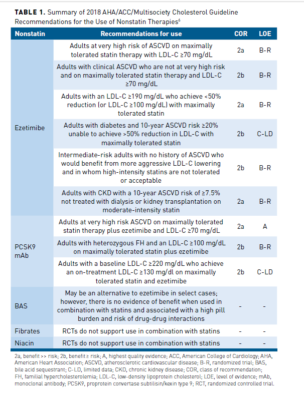 Hypercholesterolemia Treatment Guidelines from the American Heart Association and American College of Cardiology