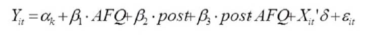 Where Y is the outcome and Xs are the control variables, chosen based on the logic model, information availability in different data sets, and previous empirical studies using similar data. AFQ and post are the indicators for unit i being in an AF4Q region and in a postintervention period, respectively. The (unobserved) fixed effect is captured by α, which is indexed by individual patients in the AF4Q Consumer Survey, zip codes in the Dartmouth Atlas data, counties in the BRFSS, AF4Q regions in the MarketScan data (excluding Humboldt County, California), physician practices in the NSPO, and hospitals in the HCAHPS. Finally, ε is a random error term assumed to have a zero mean conditional on all covariates and the fixed effect. The key parameter of interest is the DD coefficient β3, which can be interpreted as the average difference between change in the outcome in the AF4Q regions and the same change in the non-AF4Q regions over the intervention period. Because the AF4Q initiative permitted substantial variation in program implementation by the 16 local multi-stakeholder alliances, the program impact might also differ significantly across communities. To further examine the heterogeneous impact of the AF4Q initiative across regions, we conducted a subsample analysis using the same DD framework to compare each AF4Q region with the non-AF4Q regions.