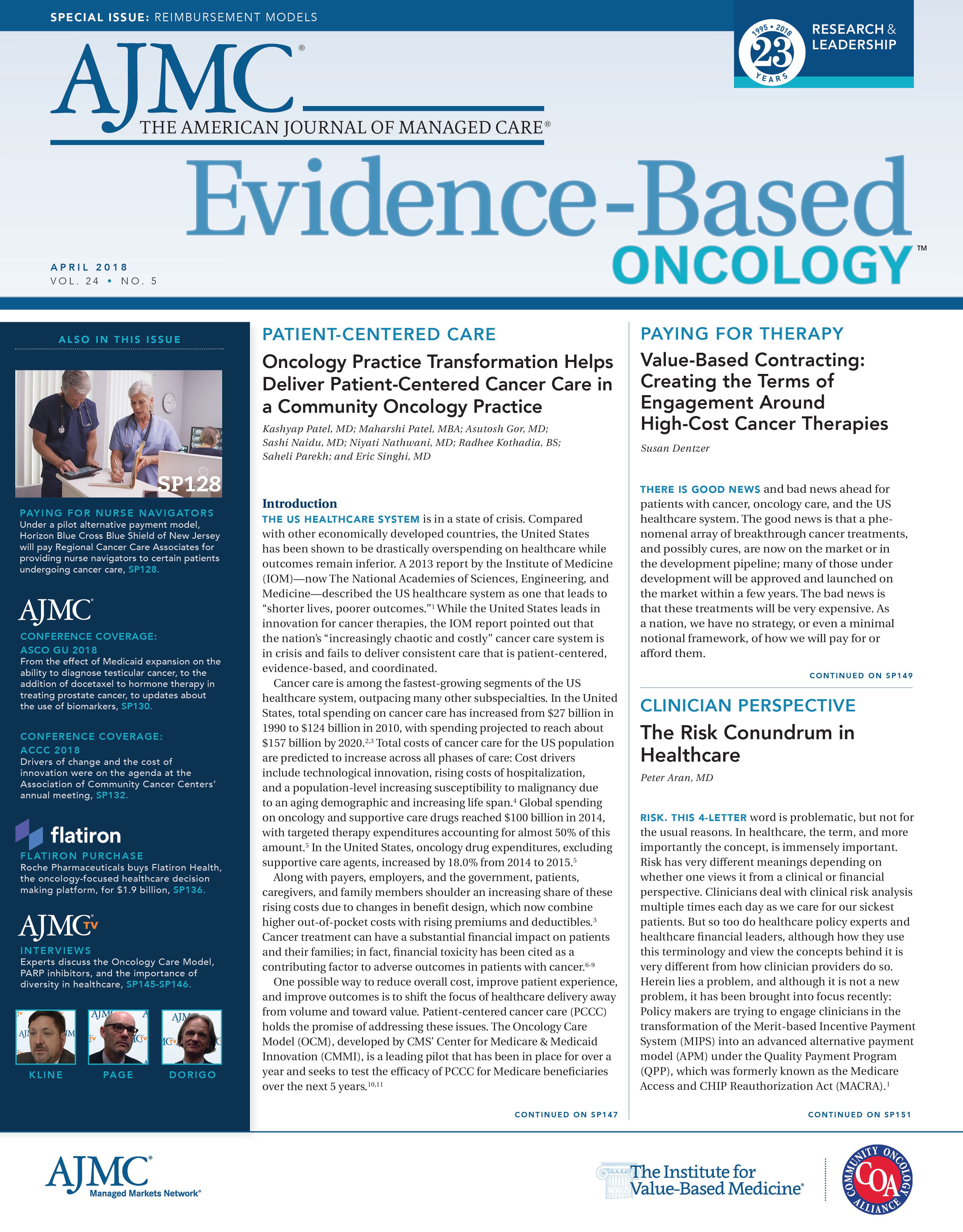 Certain ongoing care transformation programs from CMS—including CPC+ and the Oncology Care Model—incorporate cost into their clinical models. Unfortunately, those 2 programs presently involve only a small number of primary care and oncologic practices in the United States. However, as those programs continue and expected gains ensue, we will be able to share their processes of care and successful outcomes with other physicians.