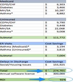 Hint: When running a ROI calculation for investing in a technology to address SDoH, seek a ROI metric with direct cause-and-effect relationship with cost. In the model proposed in this article, we will use “hospital readmissions” as the metric we want to use to cut costs.