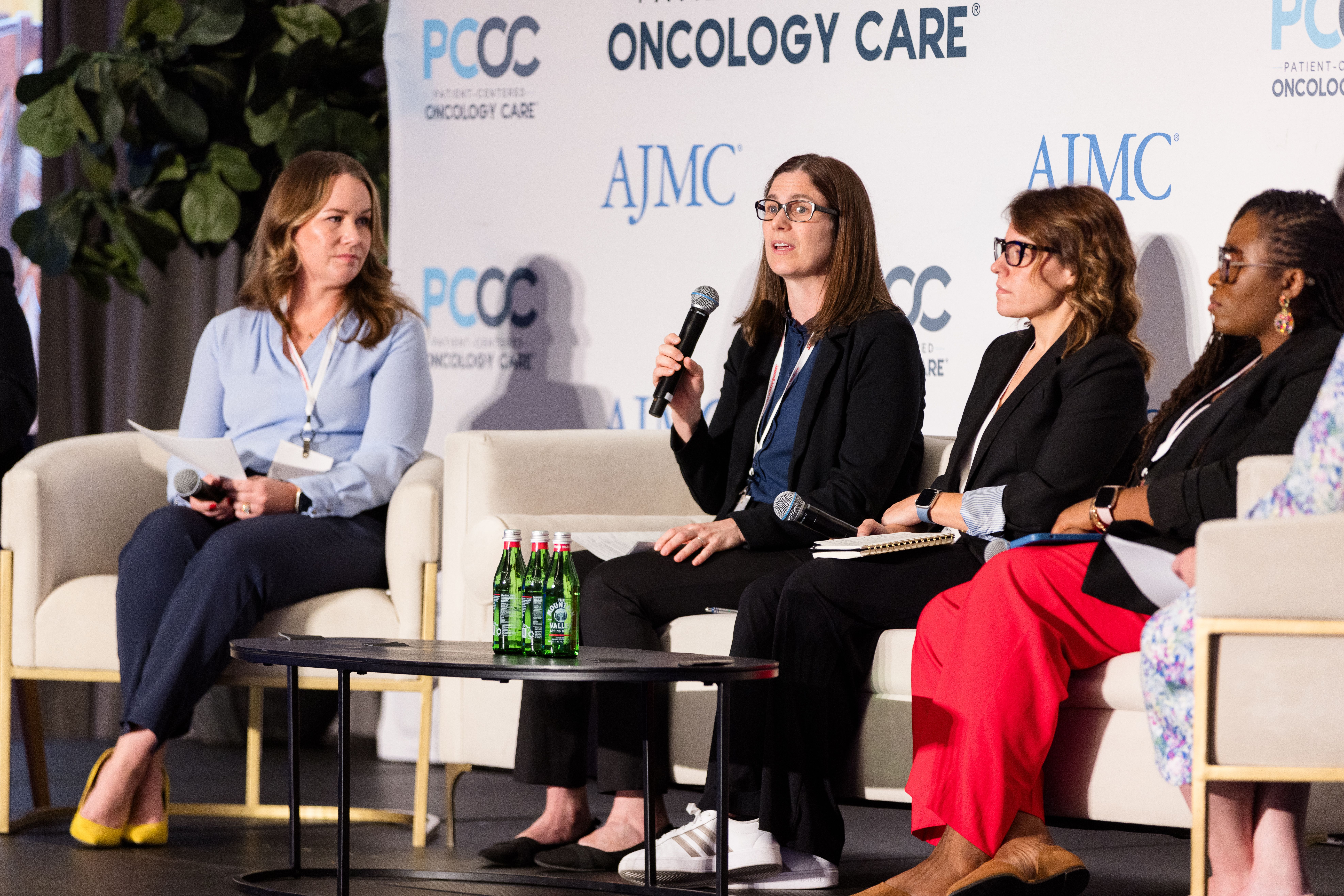 Alexandra Hacker, MSN, APRN, FNP-BC, center, makes a point during the discussion. | Image credit: Greg Smit for AJMC